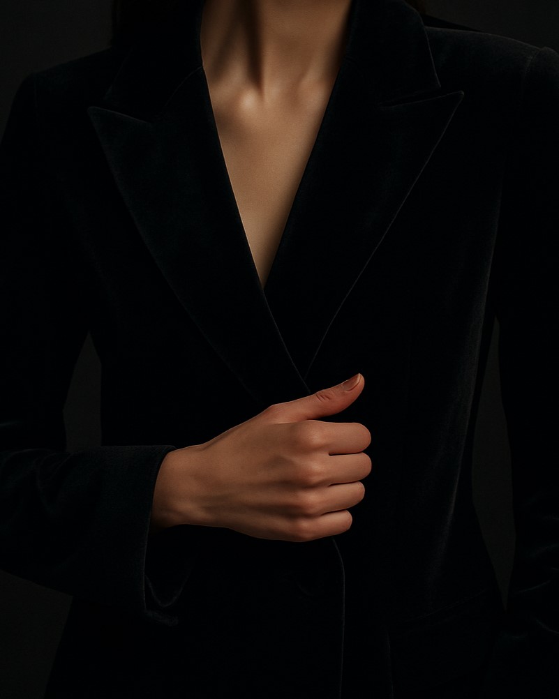 Our signature line defines the heart of VELORÉ — hand-finished velvet outerwear shaped for subtle impact. Each coat carries the quiet strength of form and feel, merging minimal design with tactile depth.